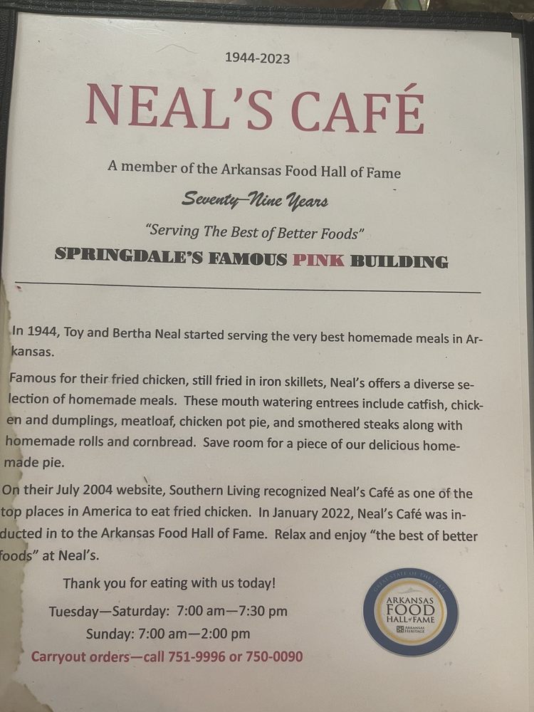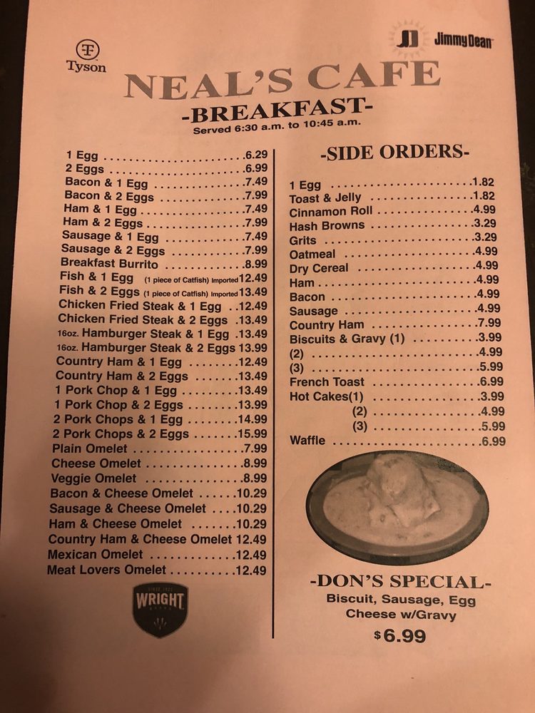 Welcome to Neal's Cafe, a cherished local gem nestled in Springdale, AR. This family-owned diner serves a delightful array of breakfast, lunch, and dinner options, perfect for any palate. From fluffy hotcakes to mouthwatering double bacon cheeseburgers, each dish embodies home-style cooking that brings warmth and comfort. The menu boasts many vegetarian options, ensuring there's something for everyone.