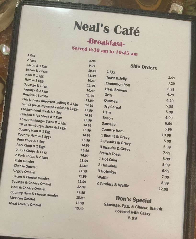 Make sure to save room for dessert—especially the famous pies that frequent customer reviews praise. Whether you're stopping in for breakfast or enjoying a relaxing lunch, Neal's Cafe promises an unforgettable dining experience that keeps patrons returning for more.